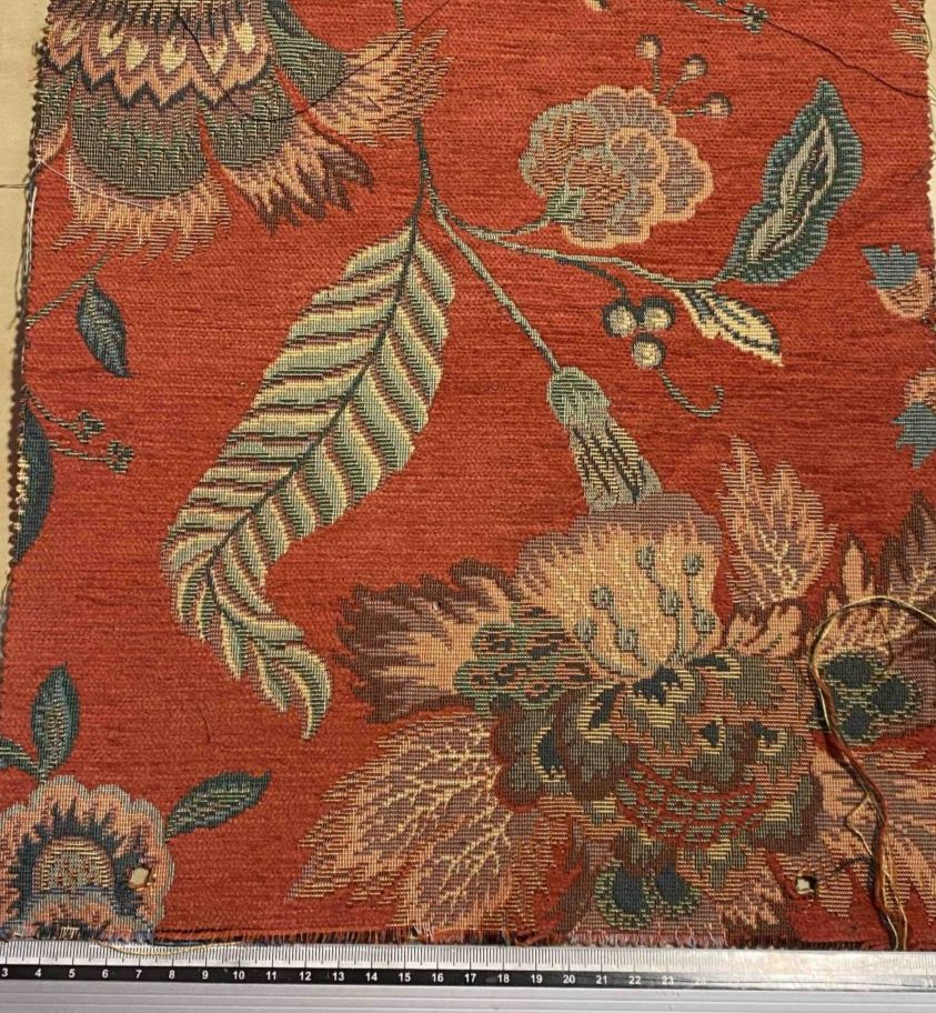 Jacquard fleurs médiévales sur fond couleurs brique.