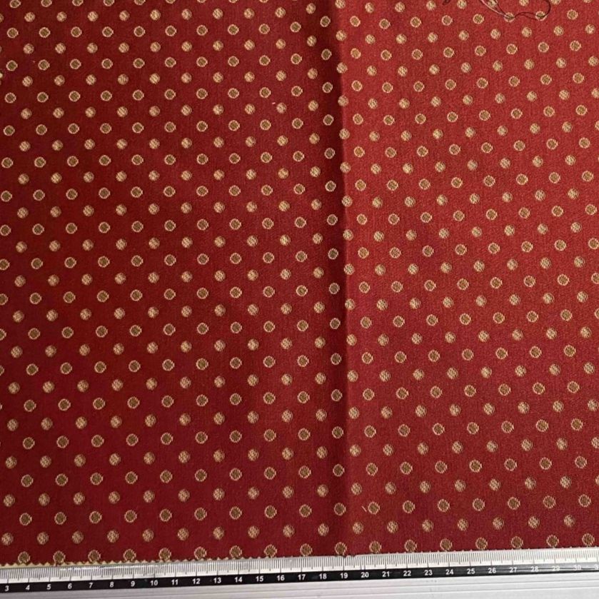 Jacquard pointillé ocre sur fond rouge.